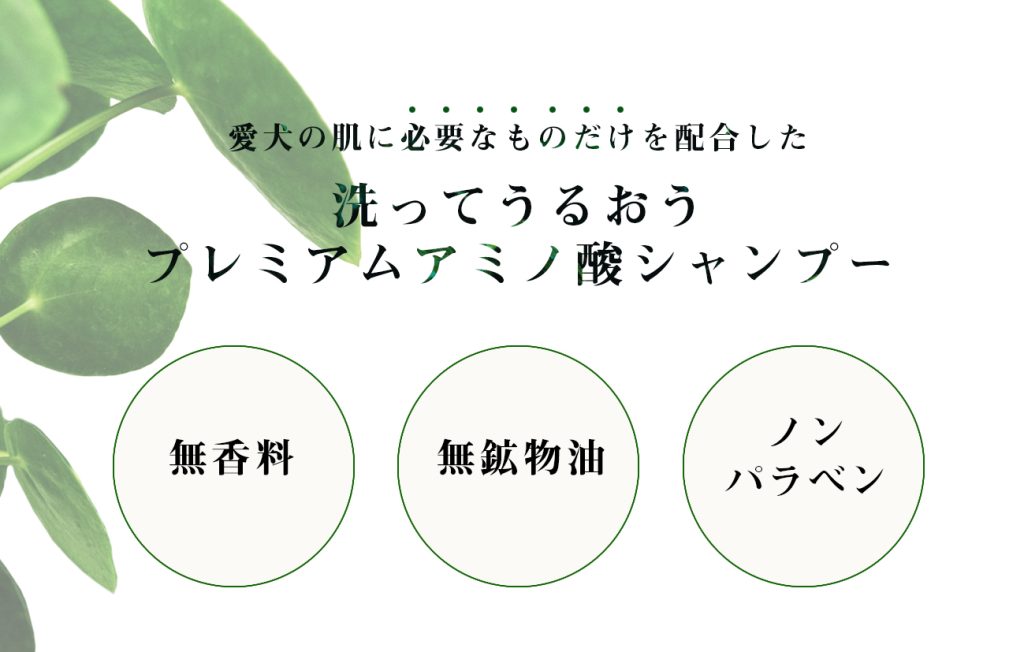 だからシャンプーの最中に愛犬が舐めても安心です。いい匂いのする香料は、皮膚アレルギーを引き起こす原因物質でもあります。