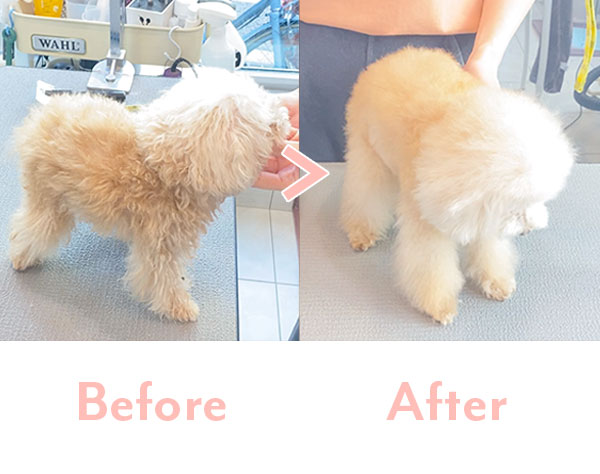 ワンプーで洗うことで、被毛のダメージを補修して、毛先をまとめ、艶やかな毛立ちに整えるので、アレンジ自在なトリミングが可能となります。