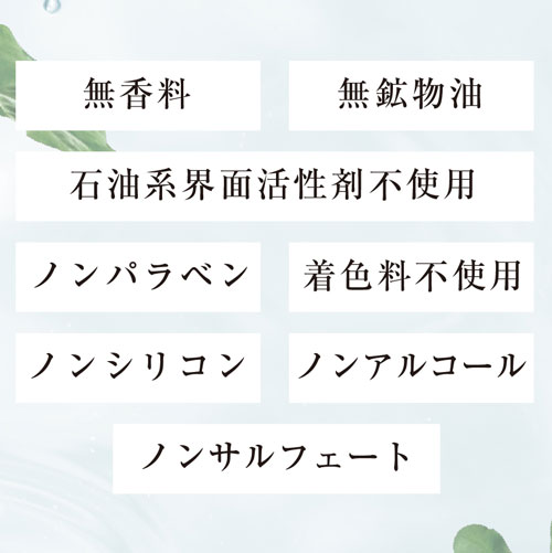 無香料、無鉱物油、ノンパラベン