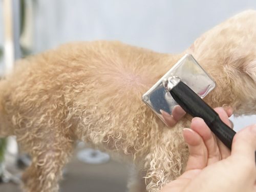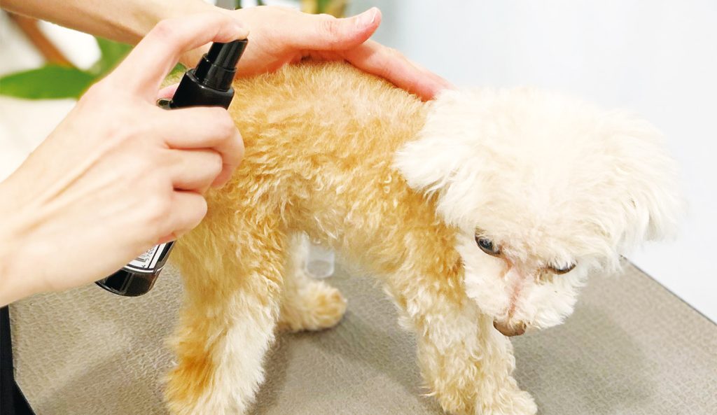 1. 被毛をかき分けて「地肌」に直接吹きかけてください